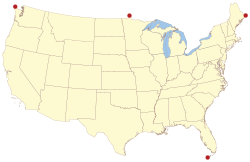 This is a list of points in the United States that are farther north, south, east, or west than any other location in the country. Also included are extreme points in elevation, extreme distances, and other points of peculiar geographic interest.