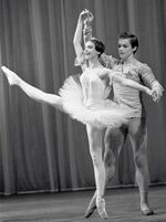 Nikolai Fadeyechev was born in Moscow, was a Soviet Russian dancer ballet, was dancer with the Bolshoi Ballet, graduated from the Moscow Ballet School in 1952 and joined the Bolshoi Theatre, danced many principal roles. He danced alongside some of the great ballerinas such as Galina Ulanova in "Giselle" and "Les Sylphides", was a regular partner with Maya Plisetskaya, Raisa Struchkova, Nina Timofeeva, Marina Kondratyeva, Natalia Bessmertnova, Ekaterina Maximova, Ludmila Semenyaka. After that, he became one of the most important teachers and répétiteurs of the Bolshoi Theatre. Nikolay Tsiskaridze, Andrey Uvarov, Sergei Filin, Artem Ovcharenko were among her adepts. | Nikolai Fadeyechev in a scene from Pyotr Tchaikovsky's ballet Swan Lake staged at the State Academic Bolshoi Theater of the USSR. 1 January 1956 | |
