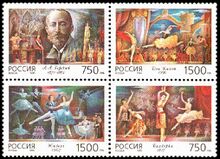 Ballets by Alexander Gorsky In Philately "Gudule’s Daughter" (a revision of the "La Esmeralda") (1902), "Salammbô" (1910), "Don Quixote" (1900), "Giselle" (1907), "La Bayadère" (1917) | ||