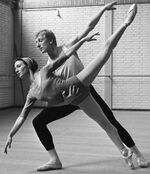 Balanchine was one of the 20th century's foremost choreographers, a balletmaster of the Ballets Russes in France, founding balletmaster (and co-founder) of New York City Ballet: his work created modern ballet, based on his deep knowledge of classical forms and techniques. | Balanchine and Suzanne Farrell in Don Quixote | |