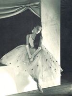 Trained in Paris by Preobrajenska, Toumanova was one of Balanchine's Baby Ballerinas and a close colleague of Léonide Massine. She made her debut in the children's ballet L'Éventail de Jeanne. Nicknamed The Black Pearl of the Russian Ballet, she performed in Balanchine's Le Bourgeois Gentilhomme and Le Palais de Cristal. She appeared in Hollywood films, including The Private Life of Sherlock Holmes, Tonight We Sing (playing Anna Pavlova), Deep in My Heart, Days of Glory, and Alfred Hitchcock's Torn Curtain. |