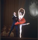 Vladimir Viktorovich Vasiliev a Russian ballet dancer, was premier dancer with the Bolshoi Ballet, and was best known for his role of Spartacus and his powerful leaps and turns, graduated from the Moscow Ballet School in 1958 (his teachers included Aleksey Yermolayev) and joined the Bolshoi Ballet. He became a premier dancer who made enormous contributions to the development of classical male dance; he came to embody the strong new Bolshoi male. He was the first dancer to be given the award la médaille d’or du meilleur danseur du Monde ("The Gold Medal of the World’s Best Dancer"); subsequently Mikhail Baryshnikov and Patrick Dupond were also awarded the distinction. Russia's influential ballet critic and choreographer Fyodor Lopukhov called him "God of the dance … A miracle in art, perfection". Numerous roles were created for him, and he performed throughout the world, usually partnering his wife, Bolshoi prima ballerina Ekaterina Maximova. Among the most notable were those created by Yuri Grigorovich, who gave him the principal roles in his original productions of Spartacus, The Nutcracker, Ivan the Terrible. Nonetheless, he and Maximova gleaned wide exposure for their appearances in Franco Zeffirelli's filmed version of Giuseppe Verdi's opera La traviata (1983). Both performed in Spanish costume (Vasiliev as a matador) in the divertissements composed for the equivalent of Act II, scene 2. Besides Maximova, Vasiliev's famous partners included: Galina Ulanova, Maya Plisetskaya, Alicia Alonso, Carla Fracci, Rita Poelvoorde and Ambra Vallo. | Vladimir Vasilyev as Nutcracker Prince in scene from Pyotr Tchaikovsky's ballet The Nutcracker staged at the State Academic Bolshoi Theater of the USSR. 1 March 1966 | |