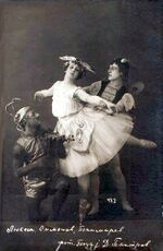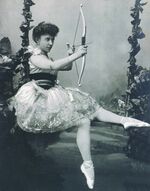 Agrippina Yakovlevna Vaganova was a Russian ballet teacher who developed the Vaganova method – the technique which derived from the teaching methods of the old Imperial Ballet School (today the Vaganova Academy of Russian Ballet) under the Premier Maître de Ballet Marius Petipa throughout the mid to late 19th century, though mostly throughout the 1880s and 1890s. It was Vaganova who perfected and cultivated this form of teaching the art of classical ballet into a workable syllabus. Her Fundamentals of the Classical Dance (1934) remains a standard textbook for the instruction of ballet technique. Her technique is one of the most popular techniques today. Among Vaganova's dance alumnae were the distinguished Soviet ballerinas Marina Semenova, Olga Jordan, Galina Ulanova, Tatiana Vecheslova, Feya Balabina, Natalia Dudinskaya, Alla Shelest, Nonna Yastrebova, Olga Moiseeva, Ludmilla Safronova, Ninel Kurgapkina, Alla Osipenko and Irina Kolpakova. Shortly after her death, on 1 November 1957, the Choreographic College on Rossi street was renamed in her honor; in 1961, it received the title of "academic" and in 1991 it began to use the name Agrippina Vaganova Academy of Russian Ballet. | Agrippina Vaganova in "La Esmeralda". St. Petersburg, circa 1910. | |