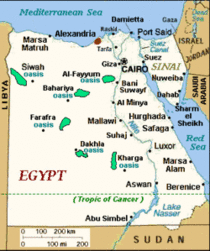 The map definition, Template:Location_map_Egypt, is intended for overlaying markers/labels on similar maps of Egypt, using coordinates of 20.8-32.8 for latitude and 25.3-35.8 for longitude.