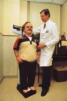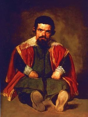 | رجل مصاب بما يبدو أنه نوع من SED (Spondyloepiphyseal Dysplasia). فأصابعه تماثل في الحجم أصابع شخص متوسط الطول. أحد الأعراض هو مجموعة من السمات الوجهية المميزة. | |