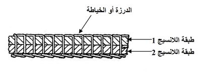 لانسيج متصالب (Cross-laid nonwoven): يشير إلى أن الألياف موضوعة بشكل طولاني ثم عرضاني بطبقات متعاقبة في شبكة اللانسيج.