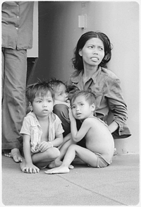 A family of boat people rescued by a U.S Navy ship.
