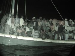 قارب فيتنامي في انتظار المهاجرين الغير الشرعيين الڤيتناميين.