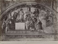 Portrait of Giacomo Feo (the tallest man standing on the right), Melozzo da Forlì