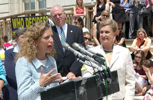 Maloney introduced the Child Care Affordability Act of 2007 to increase access to child care by providing tax credits.[103] Her amendment to a foreign aid bill succeeded in securing $60 million in funding for programs for Afghan women and girls and to help establish an Afghan commission on human rights.[104] She is the chief House sponsor of the Equal Rights Amendment.[105] In 2008 and again in 2009, Maloney authored, and secured House passage of, a bill to provide four weeks of paid parental leave to federal employees.[106][107]