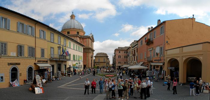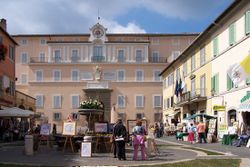 صورة پياتسا دلا ليبرتا ("ميدان الحرية")، الميدان الرئيسي في كاستل گاندولفو. الصورة مأخوذة من باب القصر الپاپوي