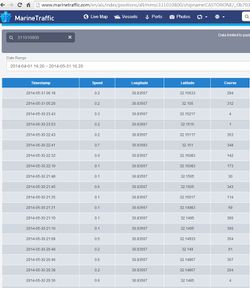 صباح 14 يونيو 2014: كاستورونه تنتقل بسرعة 9.4 عقدة لتعمل على بعد 10 كم شمال بورسعيد. |