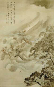 The Japanese word kamikaze is usually translated as "divine wind" (kami is the word for "god", "spirit", or "divinity", and kaze for "wind"). The word originated from Makurakotoba of waka poetry modifying "Ise"[8][مطلوب توضيح] and has been used since August 1281 to refer to the major typhoons that dispersed Mongol-Koryo fleets which invaded Japan under Kublai Khan in 1274 and 1281.[9][10]