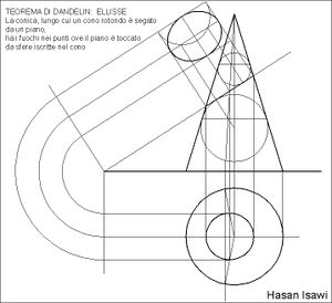 - ^ أ ب ت Taylor, Charles. An Introduction to the Ancient and Modern Geometry of Conics, page 196 ("focal spheres"), pages 204–205 (history of discovery) (Deighton, Bell and co., 1881).