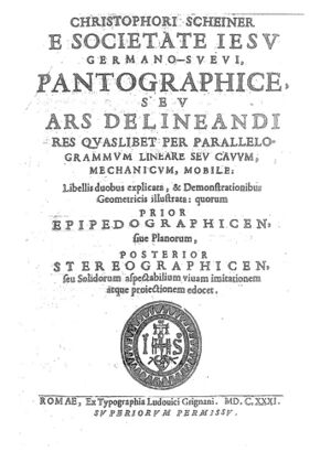 Scheiner was born in Markt Wald near Mindelheim in Swabia, earlier margravate Burgau, possession of the House of Habsburg. He attended the Jesuit St. Salvator Grammar School in Augsburg from May 1591 until 24 October 1595. He graduated as a "rhetor" and entered the Jesuit Order in Landsberg am Lech on 26 October 1595. At the local seminary, he served his biennial novitiate (1595–1597) under the tutelage of Novice Master Father Rupert Reindl SJ. From 1597 to 1598, he finished his lower studies of rhetoric in Augsburg. He took his first vows before Father Melchior Stör, SJ and received the minor orders from the Augsburg suffragan bishop Sebastian Breuning. He spent the years 1598–1601 in Ingolstadt studying philosophy (metaphysics and mathematics). In 1603, Scheiner invented the pantograph,[1] an instrument which could duplicate plans and drawings to an adjustable scale. From 1603 to 1605 he taught humanities: his years as a Latin teacher at the Jesuit grammar school in Dillingen earned him the title of Magister Artium.