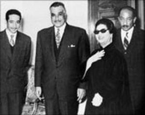 الذي نقله إلى مجلس قيادة الثورة، فذهب إليها وفد مكون من جمال عبد الناصر وعبد الحكيم عامر وصلاح سالم لإقناعها بالعدول عن رأيها، لقد أثرت هذه اللحظة فيها كثيرا جدا كما ظهر فيما بعد من أغانٍ لها ومواقف، وحملت إعجابا جارفا بعبد النـاصر وبمواقفه ككل الشعب آنذاك، ويتجلى ذلك في أغنية مثل (بعد الصبر ما طال نهض الشرق وقال، حققنا الآمال برياستك يا جمال) أو (يا جمال يا مثال الوطنية..أجمل أعيادنا المصرية برياستك للجمهورية)