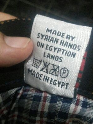 ملابس صُنعت في مصر بأيدي سورية في مصر.