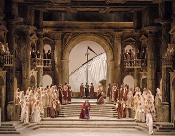 مشهد رحيل برنيقه في اوبرا عفو تيتو في عرضها في متروپوليتان اوپرا في مدينة نيويورك في ديسمبر 2012.