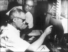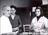 Luis Leloir and Carlos Eugenio Cardini at work in the Fundación Instituto Campomar, 1960.