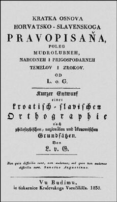 10. ^ Kratka osnova horvatsko-slavenskoga pravopisaňa