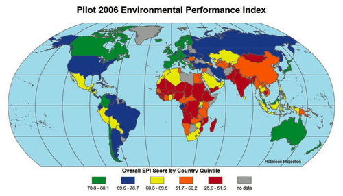 {{cite web}}:|author=has generic name (help) - ^ Yale Center for Environmental Law & Policy / Center for International Earth Science Information Network at Columbia University. "Pilot 2006 Environmental Performance Index". Retrieved 2007-06-17.