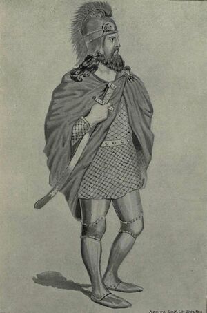 The family first appears in the early 4th century, although Toumanoff asserts that Mancaeus, who defended Tigranocerta against the Romans in 69 BC, was a member of the dynasty.[15] The first Mamikonian lord, or nakharar, about whom anything certain is known was a certain Vache Mamikonian (fl. 330–339). According to Pavstos Buzand, Vache Mamikonian, son of Artavazd and sparapet of Armenia, was ordered by King Khosrov III to exterminate two feuding noble families, the Manavazians and the Ordunis.[16] Vache also successfully defended Armenia against Sanesan, the invading king of the Maskuts, slaying the latter in a battle near Oshakan Fortress and receiving new holdings as reward.[17] He later fell in battle against the Persians and was succeeded as sparapet by his son Artavazd, who was a child at the time, since "no other adult could be found in that clan."[18][19] This episode and others in Pavstos' History illustrate the nature of the office of sparapet as the exclusive and hereditary possession of the Mamikonian clan.[18]