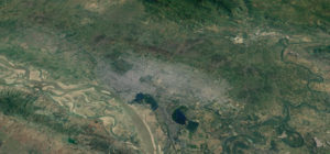 The 1980s fires augured a significant change in the city's physical character and ethnic makeup. Huge swaths of land left vacant by the fires were later purchased, mostly by the ethnic Han Chinese, many of whom were recent immigrants from Yunnan.[29] The Chinese influx accelerated after the State Peace and Development Council came to power in 1988. Many Chinese immigrants from Yunnan and, to a lesser extent, Sichuan poured into Upper Burma in the 1990s and many ending up in Mandalay, living illegally there.[30][6] In the 1990s alone, about 250,000 to 300,000 Yunnanese are estimated to have migrated to Mandalay.[31] Today, ethnic Chinese people are believed to make up about 40%–50% of the city's population that is nearly the same as the natives,[31] and are a major factor in the city's doubling of population from about 500,000 in 1980 to one million in 2008. Chinese festivals are now firmly embedded in the city's cultural calendar.[29] The Chinese dominance in the city center has pushed out the rest to the suburbs. The urban sprawl now encompasses Amarapura, the very city King Mindon left some 150 years ago. Mandalay celebrated its 150th birthday on 15 May 2009, at precisely 4:31:36 am.[8]