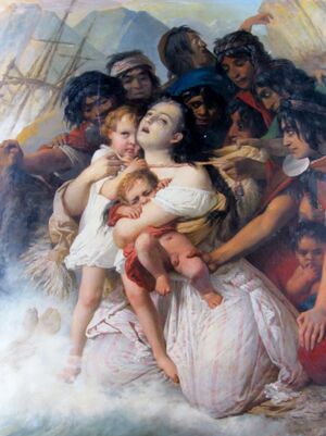 Painting by Raymond Monvoisin showing Elisa Bravo Jaramillo who was said to have survived the 1849 wreck of Joven Daniel to be then kidnapped by Mapuches.