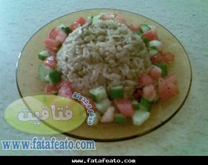• يقدم الى جانب المجدرة أنواع المخللات والسلطات حسب الذوق