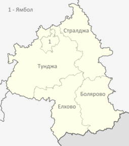يامبول ( Yambol ؛ بالبلغارية: област Ямбол، أوبلاست يامبول، الاسم السابق Yambol okrug) هي محافظة في جنوب شرق بلغاريا, neighbouring Turkey to the south. It is named after its main city Yambol, while other towns include Straldzha, Bolyarovo and Elhovo. The province embraces a territory of 3،355.5 km2 (1،295.6 sq mi)[1] that is divided into 5 municipalities with a total population, as of December 2009, of 138,429 inhabitants.[2][3][4]