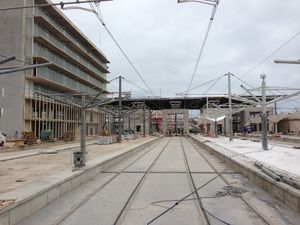 يمكن الولوج إلى المحطة عن طريق الطاكسي الصغير وتبعد عن المحطة في ساحة الأمم المتحدة على الخط الأول للطرامواي بمسافة حوالي 900 متر.
