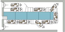 كما يضم المحلب الآلي المؤتمت غرفة للقيادة والتحكم تضم الحاسب المركزي ومكتب الإدارة.