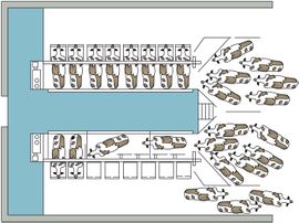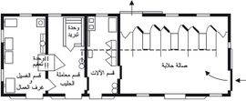تلحق بصالة الحلابة أقسام عدة وهي: قسم الآلات، وقسم معاملة الحليب، وقسم للغسيل وغرف للعمال (الشكل 4).