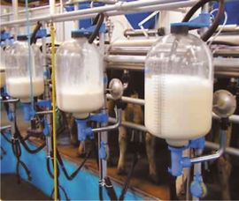 تتكون من مجموعة أنابيب ومضخات لنقل الحليب إضافة إلى أوعية استقبال مجهزة بمؤشر حجمي أو وزني تحدد كمية الحليب المحلوبة من كل بقرة في أثناء الوردية الواحدة إضافة إلى خزانات تجميع الحليب (الشكل 7).