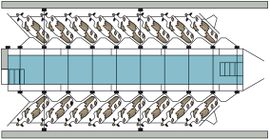 - المحلب المنحرف: تقف الأبقار بزاوية مائلة على طول الضفتين (الشكل 10).