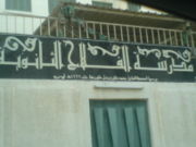 مدرسة الفلاح بجدة، مؤسسها يوسف زينل (يمين) وأمين عام الجامعة العربية عبد الرحمن عزام (وسط)، 1947. تصوير: حازم عطاسي.