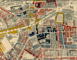 Charles Booth's poverty map showing Westminster in 1889 recorded the full range of income- and capital-brackets living in adjacent streets within the area; its central western area had become (by 1850) (the) Devil's Acre in the southern flood-channel ravine of the River Tyburn, yet Victoria Street and other small streets and squares had the highest colouring of social class in London: yellow/gold. Westminster has shed the abject poverty with the clearance of this slum and with drainage improvement, but there is a typical Central London property distinction within the area which is very acute, epitomised by grandiose 21st-century developments, architectural high-point listed buildings[16] and nearby social housing (mostly non-council housing) buildings of the Peabody Trust founded by philanthropist George Peabody.
