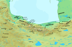 Mardavij was born ca. 890 in Gilan; he was the son of Ziyar, who belonged to the Shahanshahvand, a royal clan that roamed around Dakhel. Mardavij's mother was a sister of Harusindan, a Gilaki ruler. Mardavij belonged to the Arghich tribe, which claimed to be descended from Arghush Farhadan, king of Gilan who lived during the time of Kay Khosrow.[4] Mardavij grew up in an environment where memories of the glories of the Iranian Empire were alive in the Iranian culture. According to the 10th-century Arab historian al-Masudi, most of the Daylamite and Gilaki leaders, who were Zoroastrian and pagan, had become atheists.[5] Mardavij was one of the many Gilaki leaders that entered into the service of the Alids, once they had established their rule over Tabaristan, Gilan, and Daylam.[5]