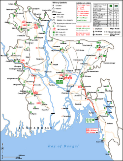 After attending the Armed Forces War College and graduated with MSc in Strategic studies in 1971, Lt.Col. Beg was stationed in East-Pakistan to serve as a military adviser to the Eastern Command led by its GOC-in-C, Lieutenant-General A.A.K. Niazi.[22] Upon arriving and observing the military deployments and actions, Lt.Col. Beg became very critical of Gen. Niazi's strategy and eventually became involved in acrimonious argument with his Gen. Niazi's staff in Dacca, having been very critical of armed forces interference in the political events in East.[22] His open mindedness and arguments with his senior officer eventually led his transfer back to Pakistan and was threatened with facing the court martial.[22]
