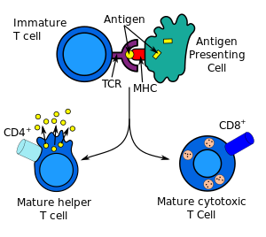 وعندما ترتبط المستقبلة بمستضد antigen و MHC، فإن ذلك يـُنشـِّط الخلية اللمفاوية التائية من خلال سلسلة من الأحداث البيوكيميائية تتوسط فيها الإنزيمات المرافقة والمستقبلات المشاركة والجزيئات الملحقة المتخصصة وعوامل النسخ المنشـَطة أو المطلـَقة.