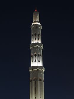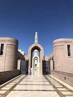 بُنِى المسجد على موقع يَحتلُّ 416,000 مترَ مربّعَ ويمتد البناء لتَغْطية منطقةَ مِنْ 40,000 مترِ مربّعِ. أُفتتحَ مِن قِبل قابوس بن سعيد سلطان عُمان في الرابع من مايو 2001.