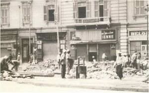 أحد الشوارع في الإسكندرية بعد أن دمرتها غارات النازيين والإيطاليين عام 1942.
