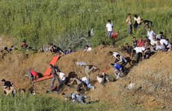 متظاهرون يحاولون عبور المنطقة الحدودية في مرتفعات الجولان 5 يونيو 2011.