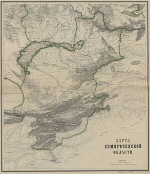 Treaty of Tarbagatai (الصينية: 塔爾巴哈台) أو معاهدة چوگوچاك (Treaty of Chuguchak ؛ الصينية: 中俄勘分西北界約記) of 7 October [ن.ق. 25 September] 1864 was a border protocol between Qing China and the Russian Empire that defined most of the western extent of their border in آسيا الوسطى، بين منغوليا الخارجية وخانية قوقند.[1] The signatories were, for Russia, Ivan Zakharov, consul-general of Ili, and Ivan Fedorovich Babkov, colonel of the Separate Siberian Corps of the General Staff, and, for China, Ming I, general of Uliastai; Hsi Lin, amban of Tarbagatai; and Bolgosu, Tarbagatai brigade commander.[2] By this agreement, Russia gained about 350،000 ميل مربع (910،000 km2) of territory at the expense of Chinese Xinjiang,[3] and Lake Balkhash went from lying on the border to being entirely surrounded by Russia.[4] It is sometimes numbered among the "unequal treaties".[5]