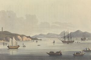 On 20 February 1840, Foreign Secretary Lord Palmerston instructed the joint plenipotentiaries Captain Charles Elliot and his cousin Admiral George Elliot to acquire the cession of at least one island for trade on the Chinese coast, amongst other terms.[2] In November 1840, during the First Opium War, George returned to Britain due to ill health, leaving Charles as sole plenipotentiary. In negotiations with Imperial Commissioner Qishan, Elliot wrote on 29 December to "request a place in the outer sea, where the British can fly their flag and administer themselves, just as the Westerners do in Macao."[3] However, the year ended with no agreement. To force Chinese concessions, the British captured the forts at the entrance of the Humen strait (Bogue) on 7 January 1841, after which Qishan agreed to consider Elliot's demands. Negotiations ensued at the Bogue near Chuenpi.[4]