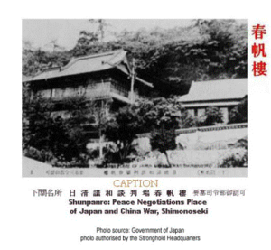 وقد تمكنت المعاهدة من أن تنهي الحرب اليابانية الصينية الأولي وفيها تتنازل امبراطورية قينگ عن مطالبتها بكوريا وكذلك تتنازل لليابان عن الجزء الجنوبي من مقاطعة فنگتيين تايوان و جزر پسكادورس.