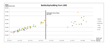 The Americans, the British, the French, the Italians, and the Japanese had been allies during World War I, but with the German threat seemingly finished, a naval arms race between the erstwhile allies seemed likely for the next few years.[1] US President Woodrow Wilson's administration had already announced successive plans for the expansion of the US Navy from 1916 to 1919 that would have resulted in a massive fleet of 50 modern battleships.[2]