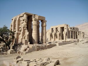 معبد الرمسيوم كما كان في عهد طيبة الفرعونية].