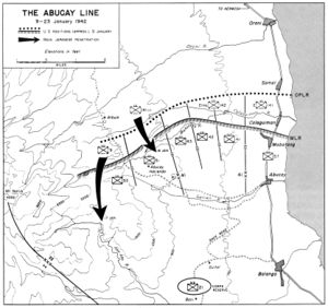 وقع اشتباك آخر إلى الشرق، عندما قامت قوة يابانية بمفاجأة ومطارة الفرقة 53 مشاة بقيادة الكلونيل جون بوترايت. كما توغلت هذه القوة في العمق خلف خطة أبوكاي-موبان على امتداد وادي نهر أبو-أبو، لكن تم صد تقدمهم بواسطة الوحدات المجمعة من الفرقتين 21 و51، الفرقة 31 تحت قيادة الجنرال كليفورد بلومل، والفرقة 92 مشاة تحت قيادة الكولونيل جون رودمان عند منطقة غابات باني-گويرول. قامت الفرقة 31 مشاة والفرقة 45 مشاة، الكشافة الفلپينية تحت قيادة الكولونيل توماس دويل، باستعادة جزئية للخط الذي تخلت عنه الفرقة 51.[بحاجة لمصدر]