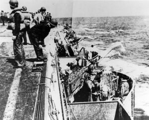 Both sides expected to find each other early the next day, and spent the night preparing their strike aircraft for the anticipated battle as their exhausted aircrews attempted to get a few hours' sleep. In 1972, U.S. Vice Admiral H. S. Duckworth, after reading Japanese records of the battle, commented, "Without a doubt, May 7, 1942, vicinity of Coral Sea, was the most confused battle area in world history."[66] Hara later told Yamamoto's chief of staff, Admiral Matome Ugaki, he was so frustrated with the "poor luck" the Japanese experienced on 7 May that he felt like quitting the navy.[67]